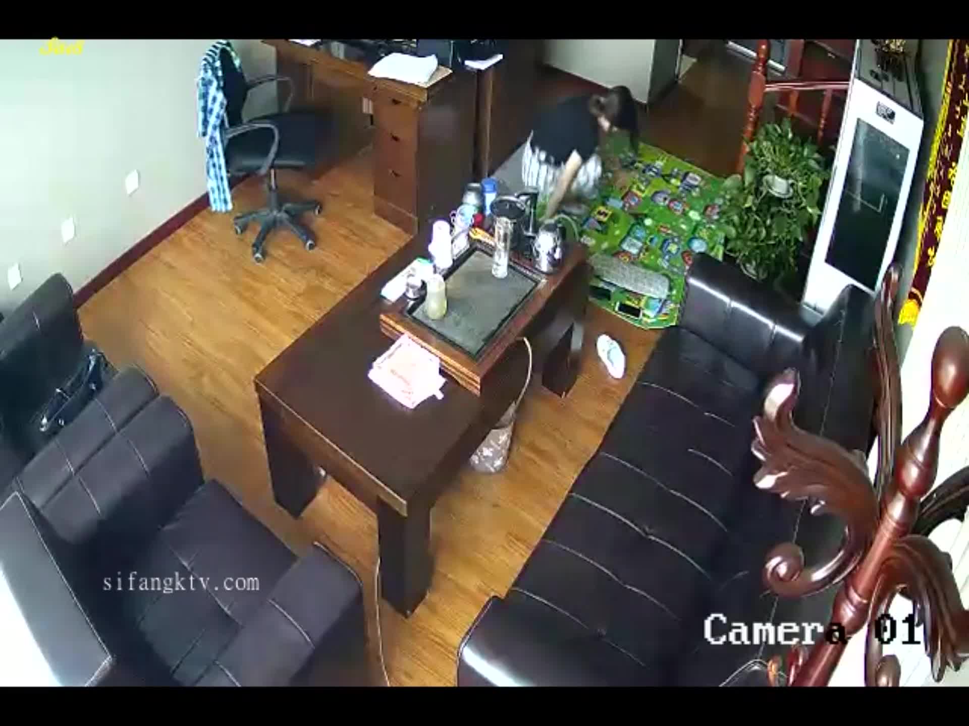 经理和公司出纳勾搭上了午休时间在办公室偷情被监控拍下。