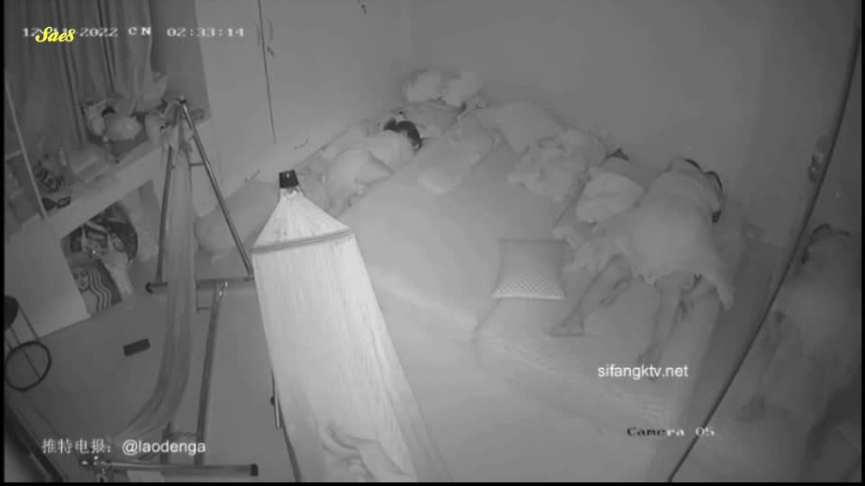 家庭摄像头窥探二胎宝妈等娃睡着扒老公裤子要做爱