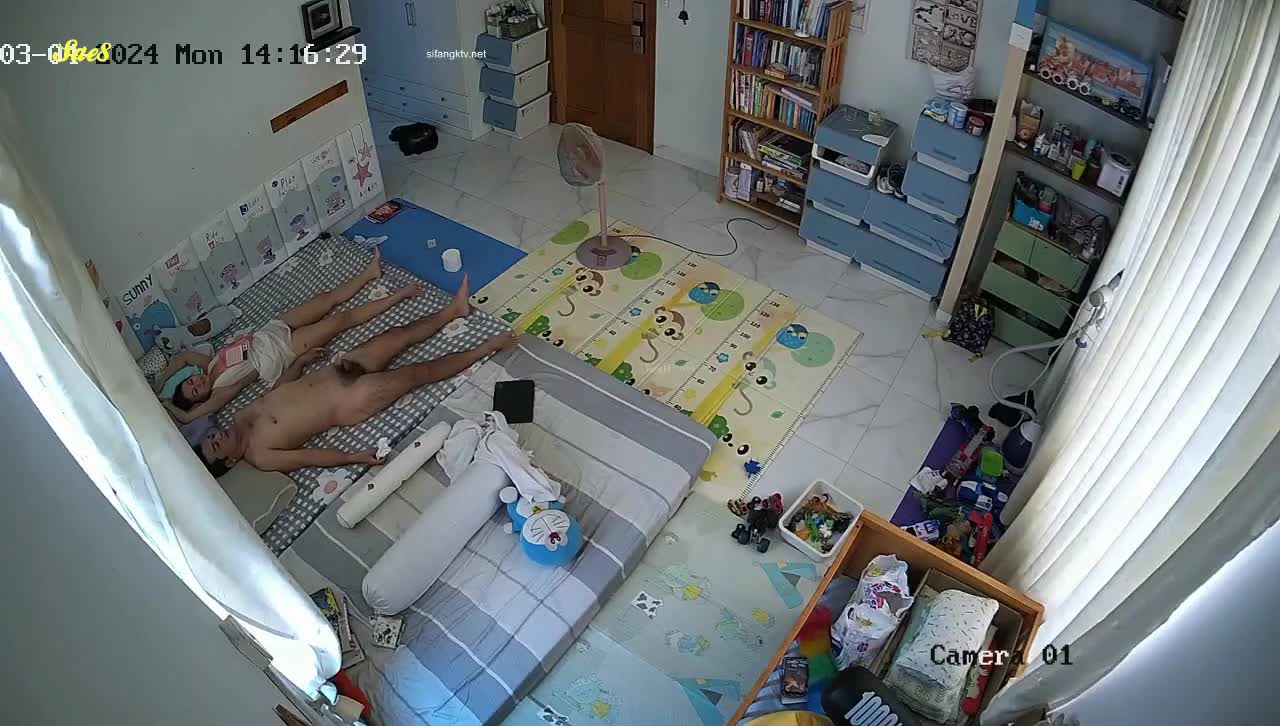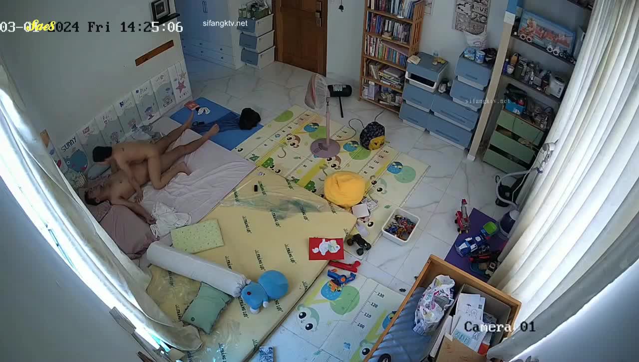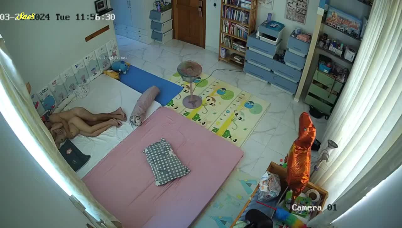 黑客破解家庭摄像头偷拍白天把孩子送去学校夫妻肆无忌惮的做爱