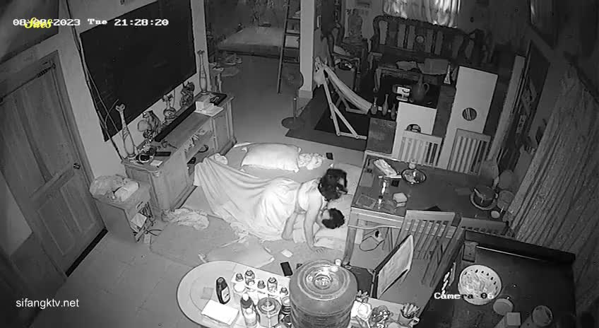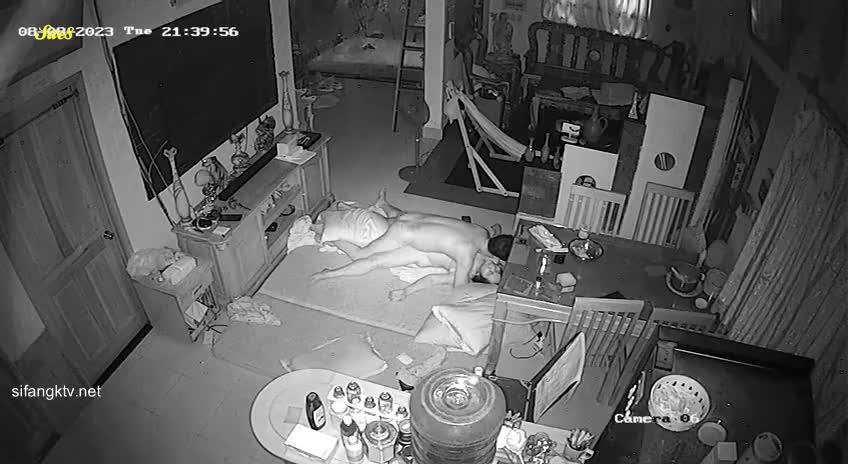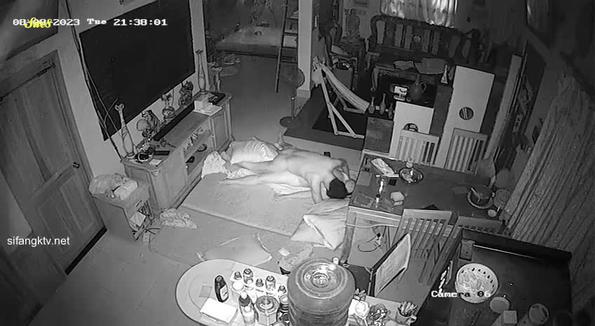 家庭监控入侵恩爱夫妻客厅打地铺做爱